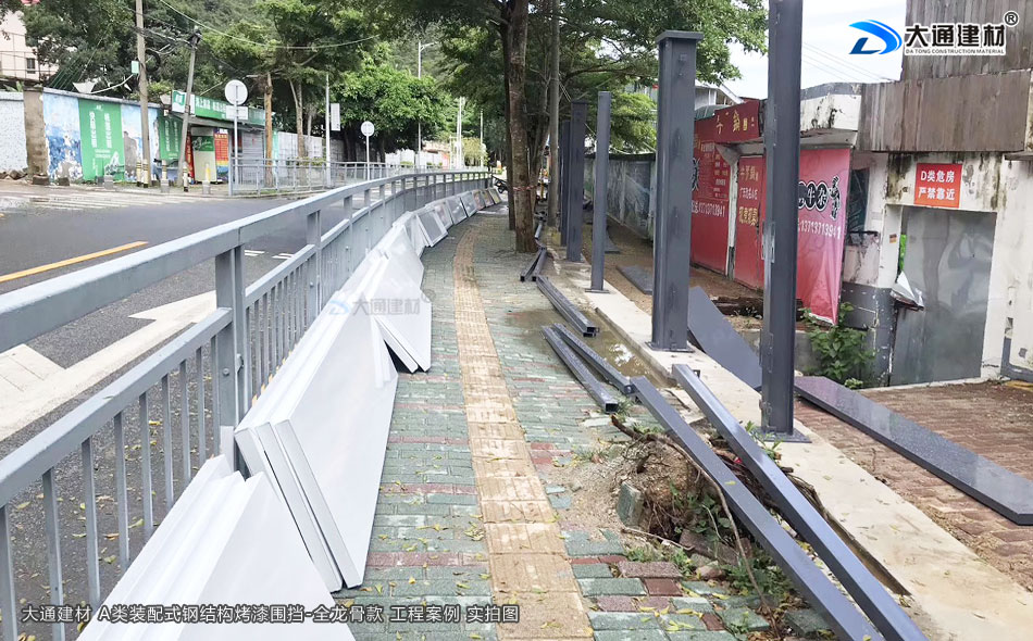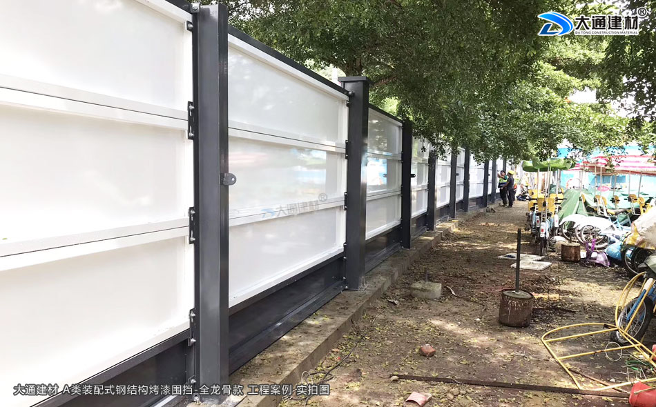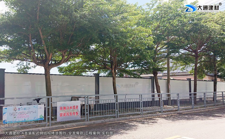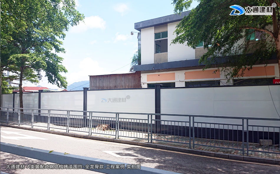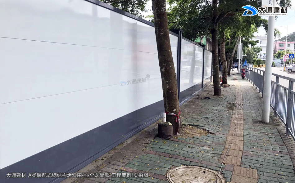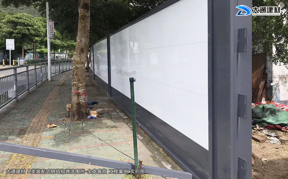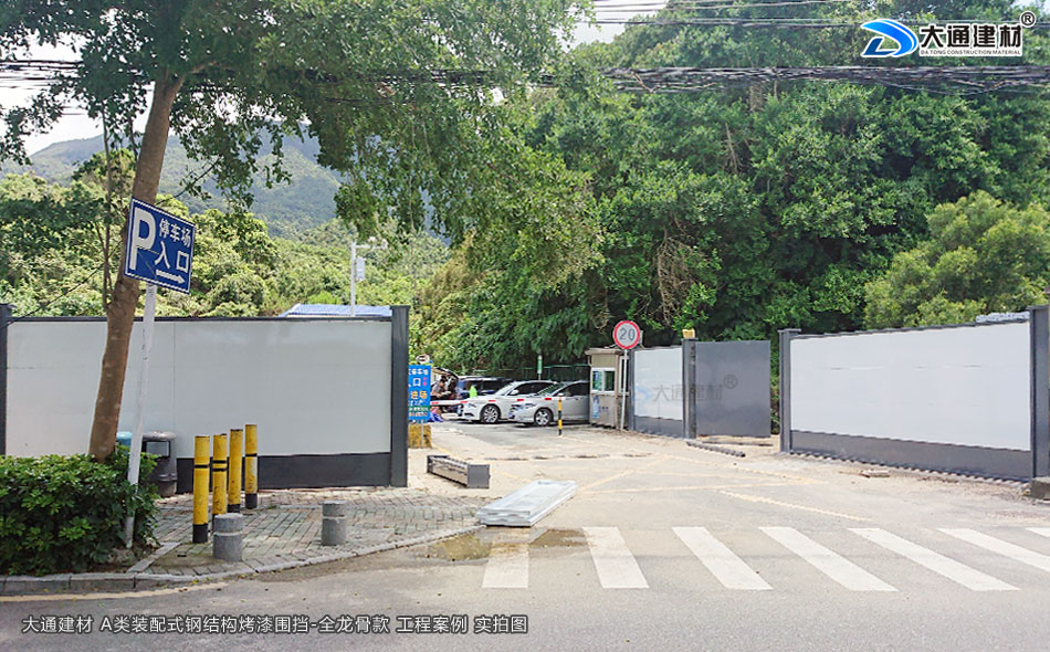 深圳市大通建材裝配式鋼圍擋全龍骨A款 采用裝配式+鋼結(jié)構(gòu)+全龍骨 烤漆鋼板構(gòu)造 安全穩(wěn)固 抗風(fēng)力強(qiáng) 美觀環(huán)保 經(jīng)久耐用,應(yīng)用于廣東省深圳市大鵬新區(qū)楊梅坑改造項(xiàng)目工程中,以下展示的圍擋圖片是大通建材裝配式鋼圍擋全龍骨A款在該項(xiàng)目部分位置的實(shí)拍圖