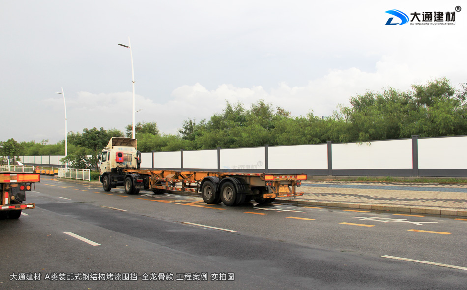 深圳城市建設項目南山前海工程選用大通建材A類鋼結構圍擋全龍骨款+圍擋基礎塊,符合市政標準、美觀環保、安全穩固