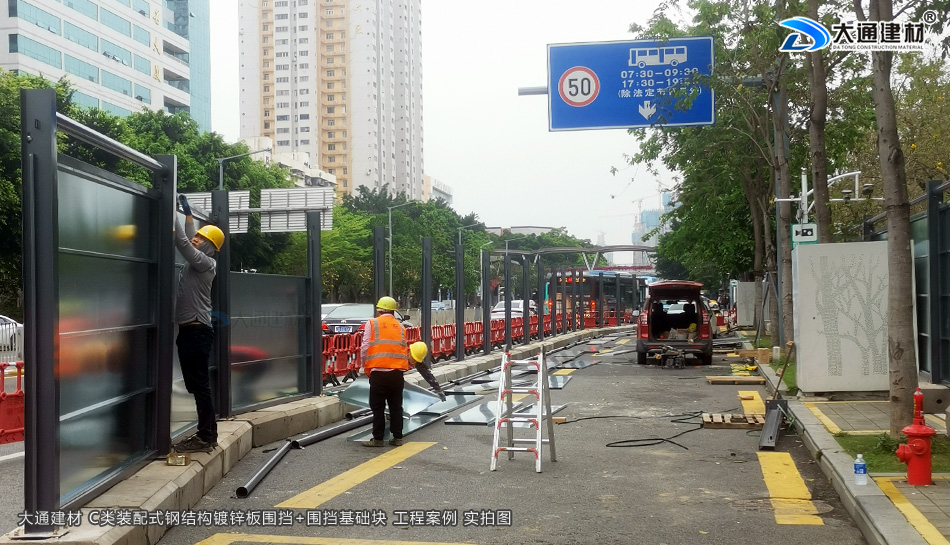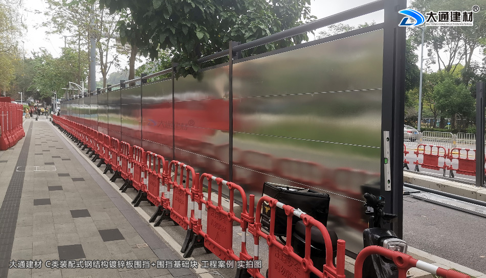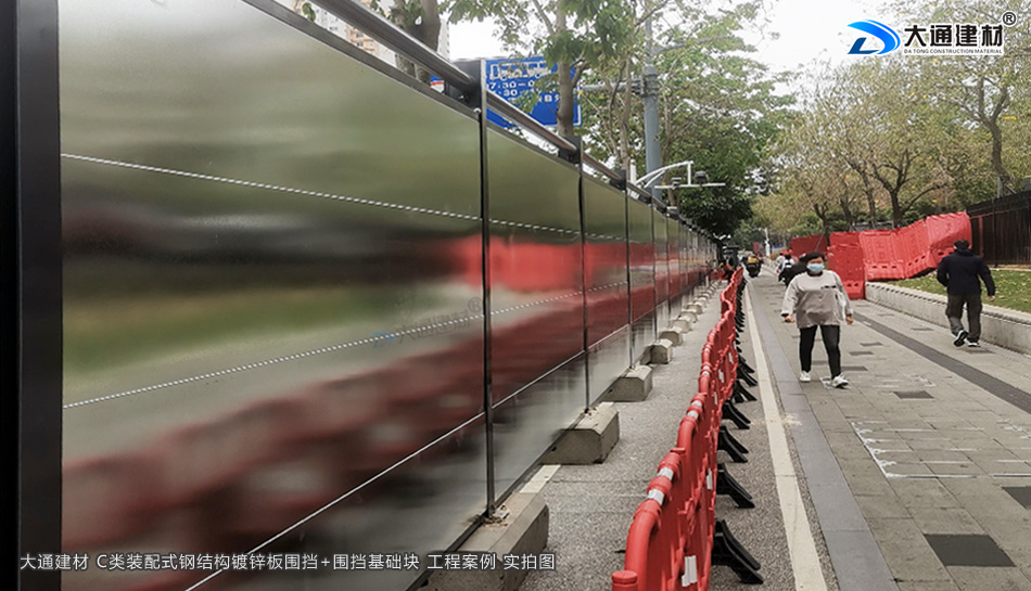 深圳市羅湖區(qū)黃貝街道項(xiàng)目工程使用的是深圳市大通建材提供的C類鍍鋅鋼結(jié)構(gòu)圍擋+圍擋基礎(chǔ)塊,由大通建材公司專業(yè)團(tuán)隊(duì)生產(chǎn)-銷(xiāo)售-配送-安裝等服務(wù)