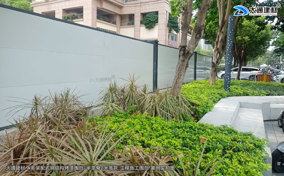 深圳城市建設(shè)城區(qū)改造工程項目選用大通建材2米高裝配式圍擋烤漆A款,具有結(jié)構(gòu)牢固、可抗臺風(fēng)、可回收循環(huán)利用、美觀、環(huán)保等特點,是目前業(yè)內(nèi)倍受喜愛的圍擋之一。