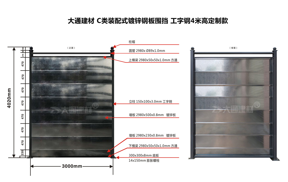 深圳市大通建材生產的C類裝配式鍍鋅鋼結構圍擋4米高定制款,把深圳市龍華區建筑工程施工現場圍起來,為施工安全保駕護航。