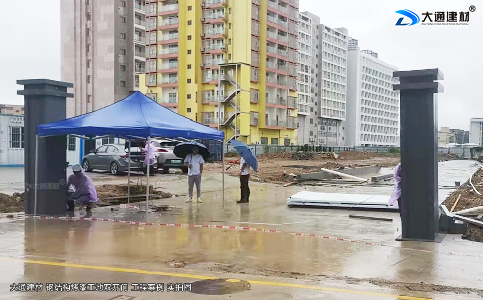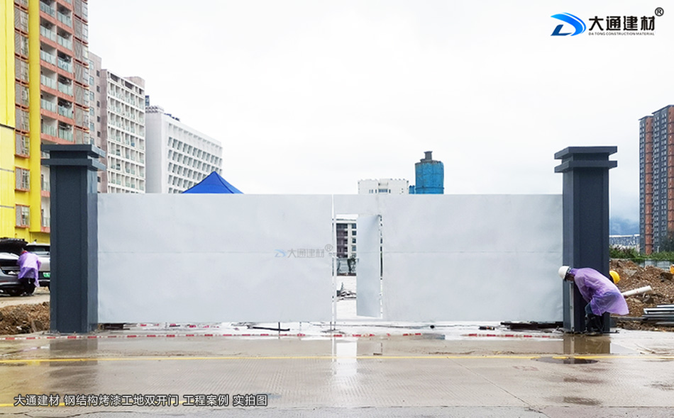 大通建材烤漆鋼結(jié)構(gòu)款工地雙開(kāi)門(mén)-先安裝大門(mén)立柱