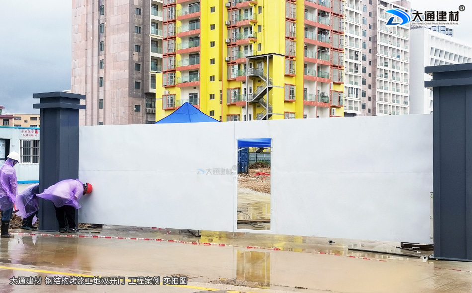 深圳龍崗小區(qū)改造項(xiàng)目工程應(yīng)用大通建材生產(chǎn)銷(xiāo)售的烤漆鋼結(jié)構(gòu)款工地雙開(kāi)門(mén)
