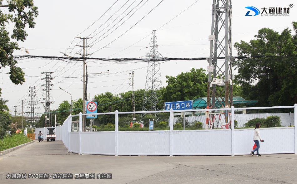 深圳市福田區蒲田路口橋項目工程采用的是深圳大通建材生產批發的半透明圍擋+pvc圍擋等產品,美觀環保、安裝方便快捷、安全穩固…