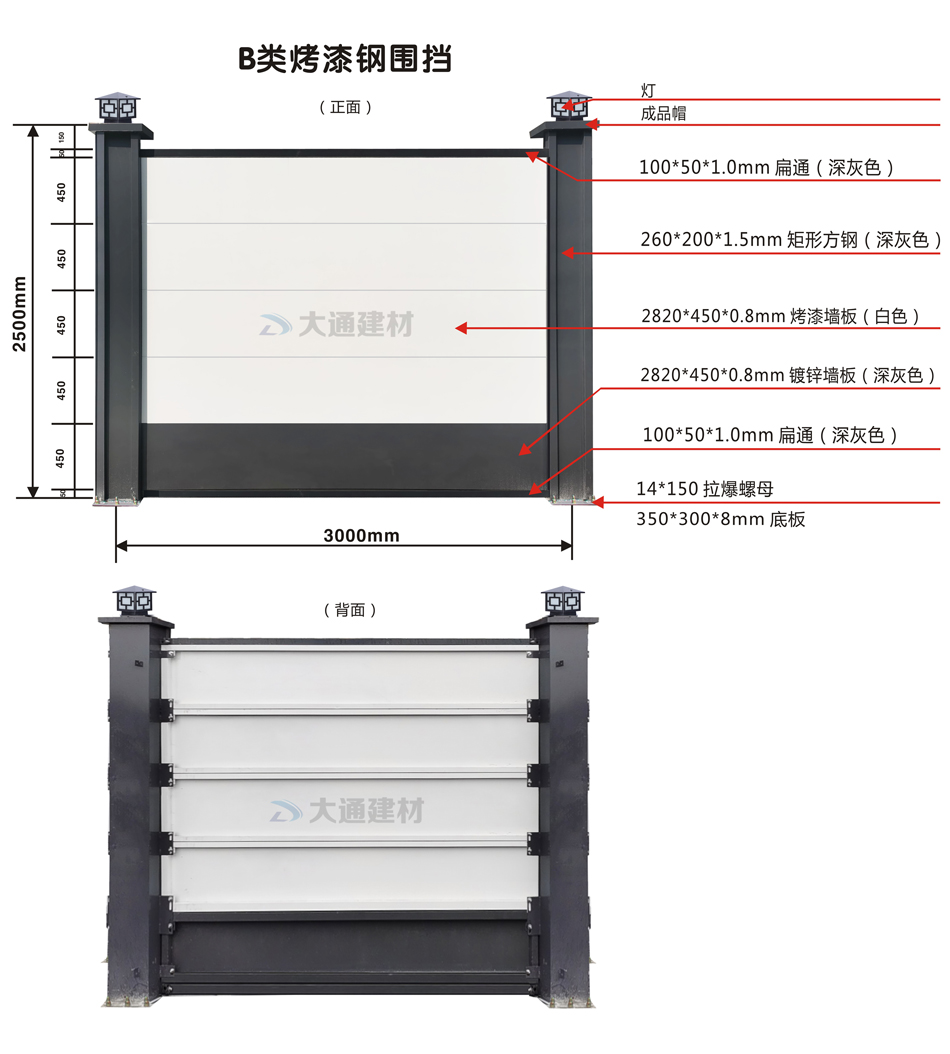 深圳市大通建材生產(chǎn)批發(fā)的B類鋼圍擋烤漆款 安全穩(wěn)固——進(jìn)一步提升材質(zhì)的剛度和結(jié)構(gòu)可靠性等標(biāo)準(zhǔn),推薦使用鋼結(jié)構(gòu)圍擋,選擇可靠度高的結(jié)構(gòu)形式,增強(qiáng)使用安全性能和防御臺風(fēng)的能力。