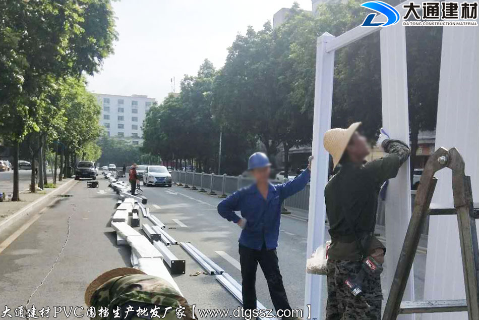 大通建材廠家批發符合佛山市政標準白色PVC圍擋,PVC圍擋生產源頭廠家,備有充足的PVC圍擋庫存,用戶下單 大通即可安排發貨,大通PVC圍擋美觀環保、安全穩固、經久耐用,在使用中有較好的防護能力,適合市政道路/地鐵工程/地產建設等選用。