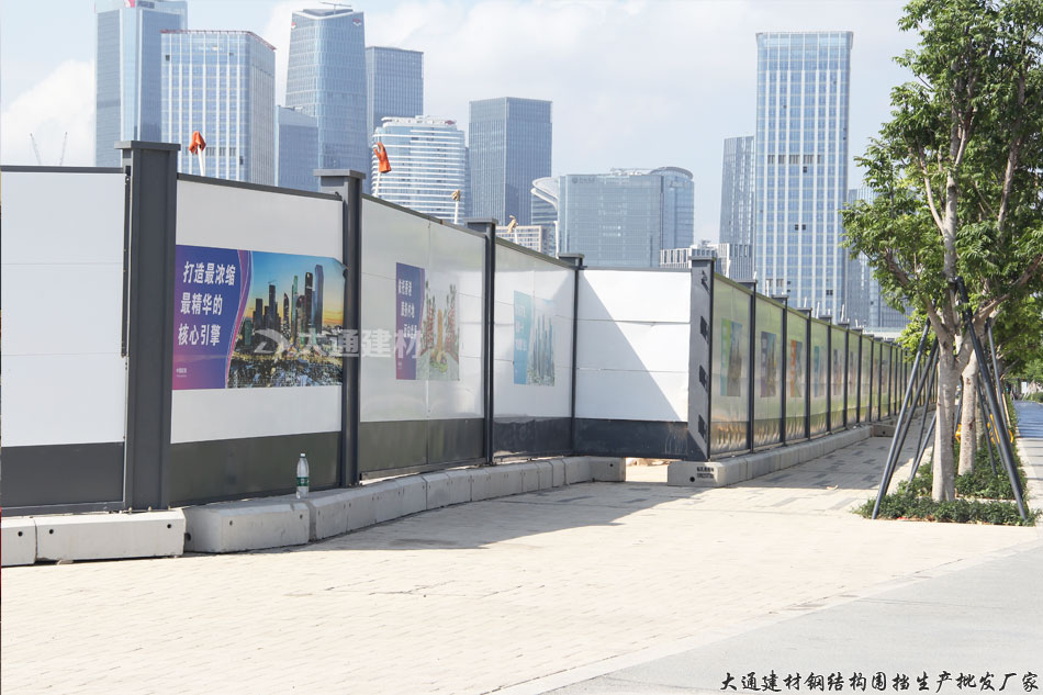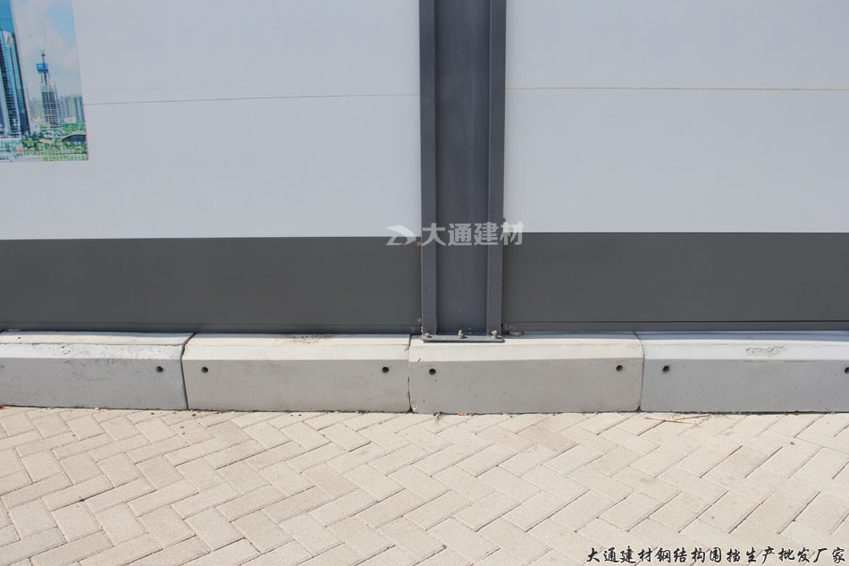 深圳市大通建材有限公司生產的惠州款鋼結構圍擋由左右立柱、上下橫梁、墻板,底板、基礎等配件構成,具有抗壓力強和韌性高的優(yōu)點