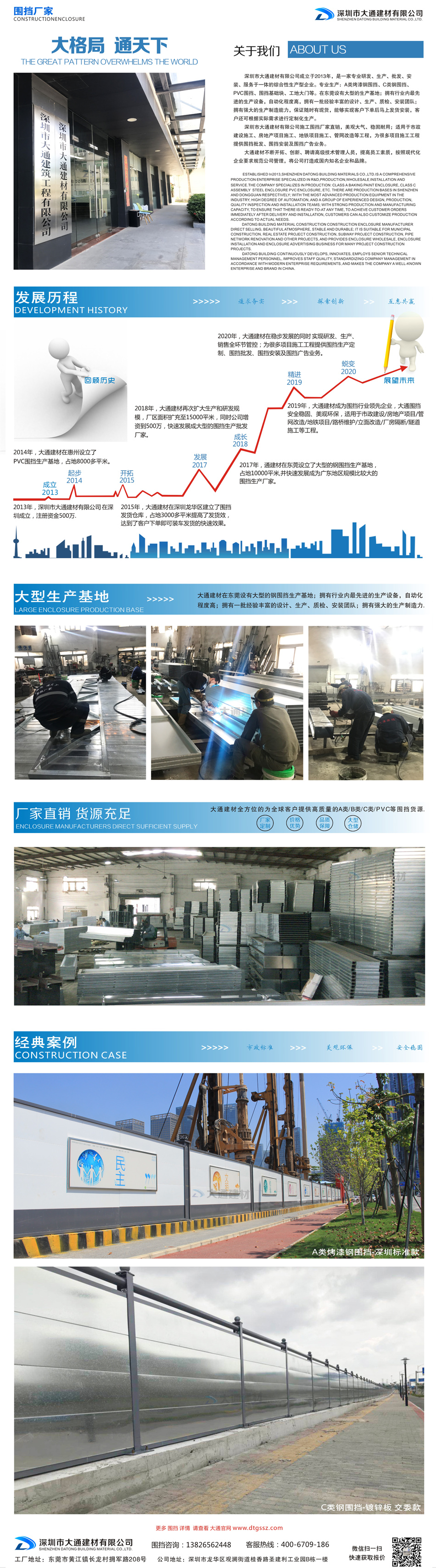 深圳市大通建材有限公司是一家集研發、生產、安裝、服務于一體的綜合性圍擋廠家,