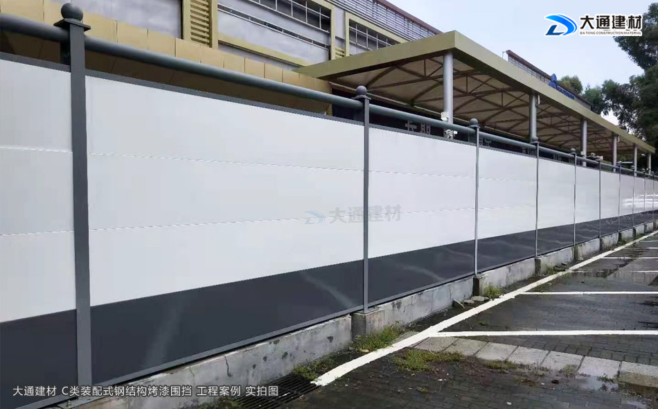 施工安全方案解決工程師,24小時在線等候您的咨詢!深圳市大通建材有限公司10多年來一直從事圍擋生產批發工作,在東莞設有大型鋼結構圍擋生產基地,那么大通建材C類裝配式鋼結構圍擋烤漆款有怎樣的規格特點呢?現在就與大通鋼結構圍擋小編一起了解一下吧。