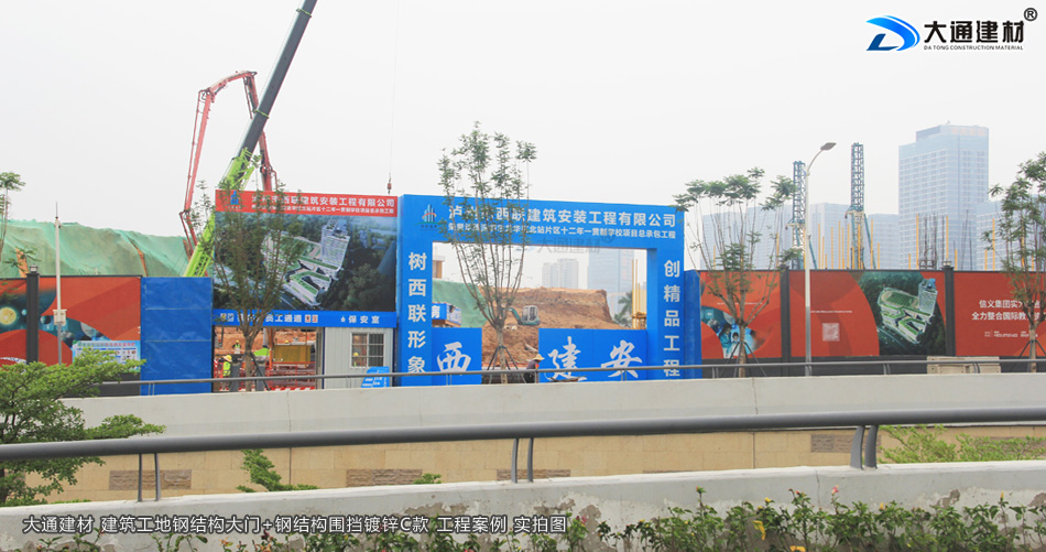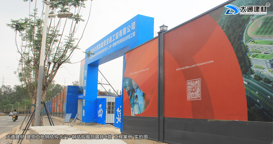 瀘州市西聯(lián)建筑安裝工程有限公司在深圳市龍華區(qū)北站片區(qū)學校項目工程,選用了深圳市大通建材生產(chǎn)的鋼結構工地大門為項目部大門。