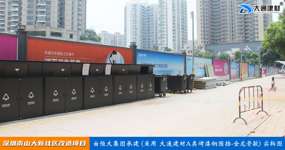 大通建材A類烤漆鋼圍擋-全龍骨款 具有“美觀環保、抗風能力強,安全穩固、無損耗、無建筑垃圾,拆裝快捷、可多次重復使用,可疊放、便于運輸和儲存,外觀具有美化城市環境”等優點,適合房地產修建、市政工程、交通道路等工程建設項目現場使用。