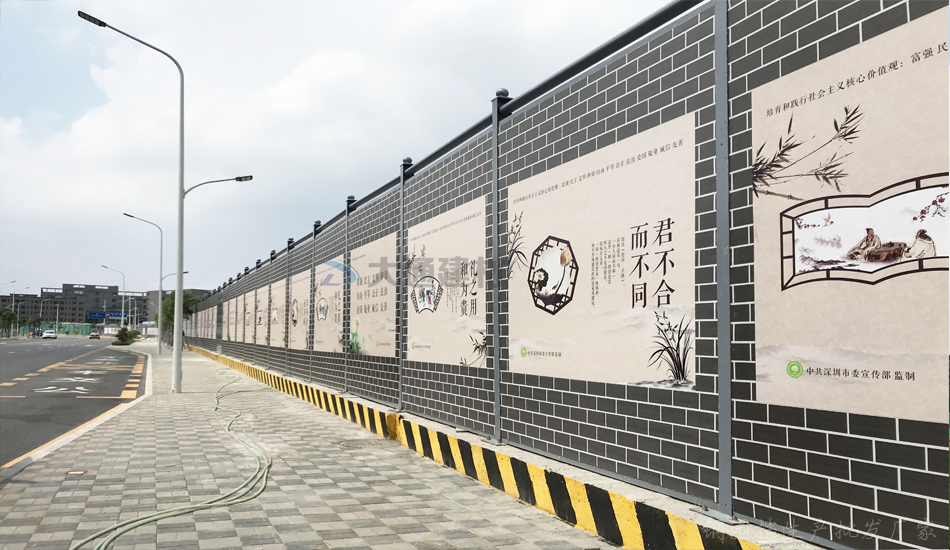 新型圍擋全部采用金屬材料,表面靜電噴涂處理,永久不褪色耐腐蝕,使用年限3年以上。環保綠色建筑材料首選,可回收可循環使用。