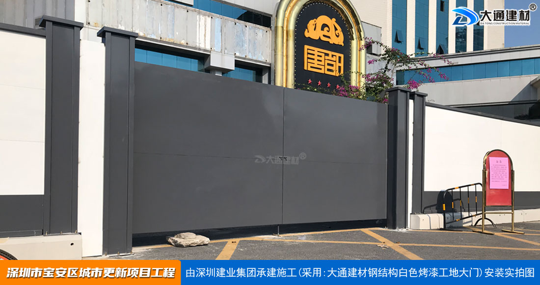 深圳市大通建材專業鋼結構工地烤漆雙開門生產批發源頭廠家,在東莞設有大型工地鋼結構烤漆大門生產基地,貨源充足,由廠家直接銷售價格便宜;一龍條服務,能夠實現客戶下單后馬上發貨安裝,客戶還可根據實際需求進行定制化生產。了解更多“大通建材工地大門”規格與價格詳情 請咨詢 13826562448 梁先生