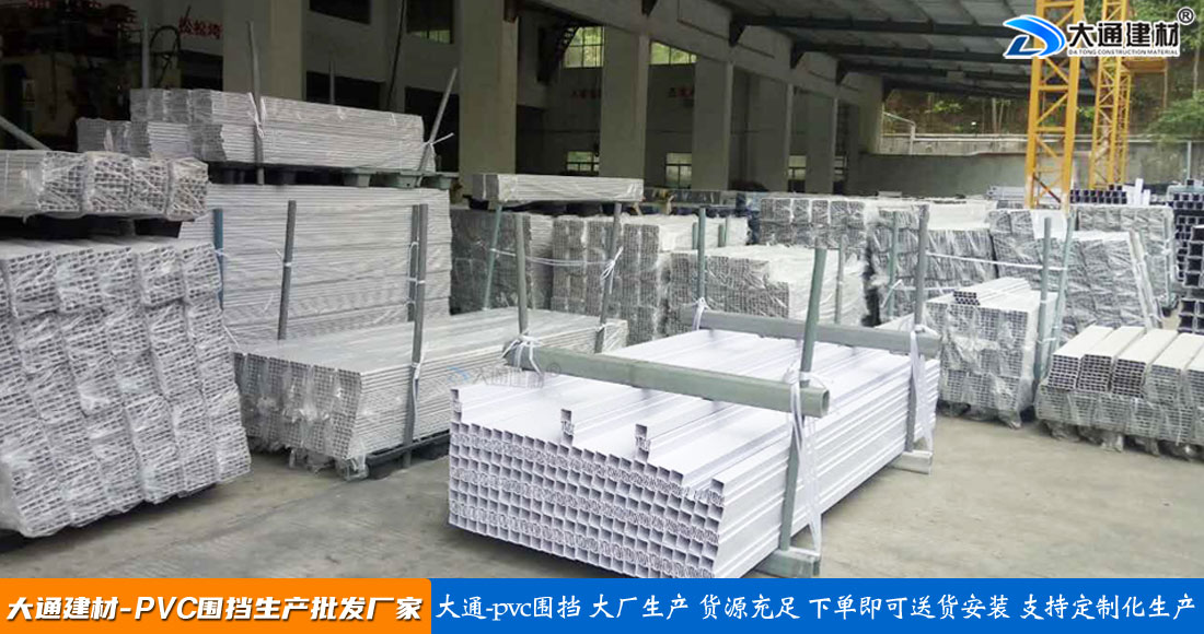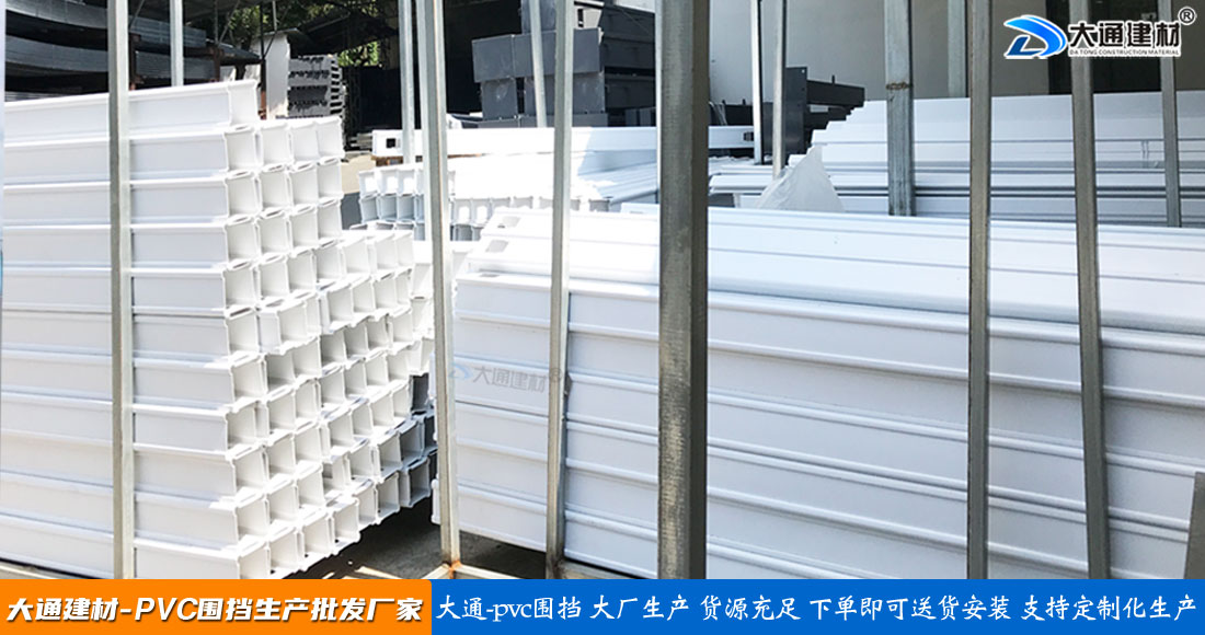 大通建材PVC圍擋立柱、橫管、擋板、斜支撐、橫撐加強(qiáng)筋等部件按照設(shè)計(jì)與生產(chǎn)標(biāo)準(zhǔn),尺寸與工藝實(shí)現(xiàn)標(biāo)準(zhǔn)化生產(chǎn)和標(biāo)準(zhǔn)化拼接安裝,從而達(dá)到高效率生產(chǎn)、快速運(yùn)輸和拼接式安裝,大大降低了圍擋的采購(gòu)成本。